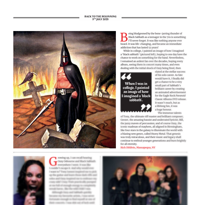 DiSilvio's article and artwork, entitled "Black Sabbath", was featured in the magazine "Back to the Beginning" that accompanied the mega tribute for Black Sabbath that was held at Villa Park on July 5, 2025 to celebrate their origins from Birmingham and their historic career.